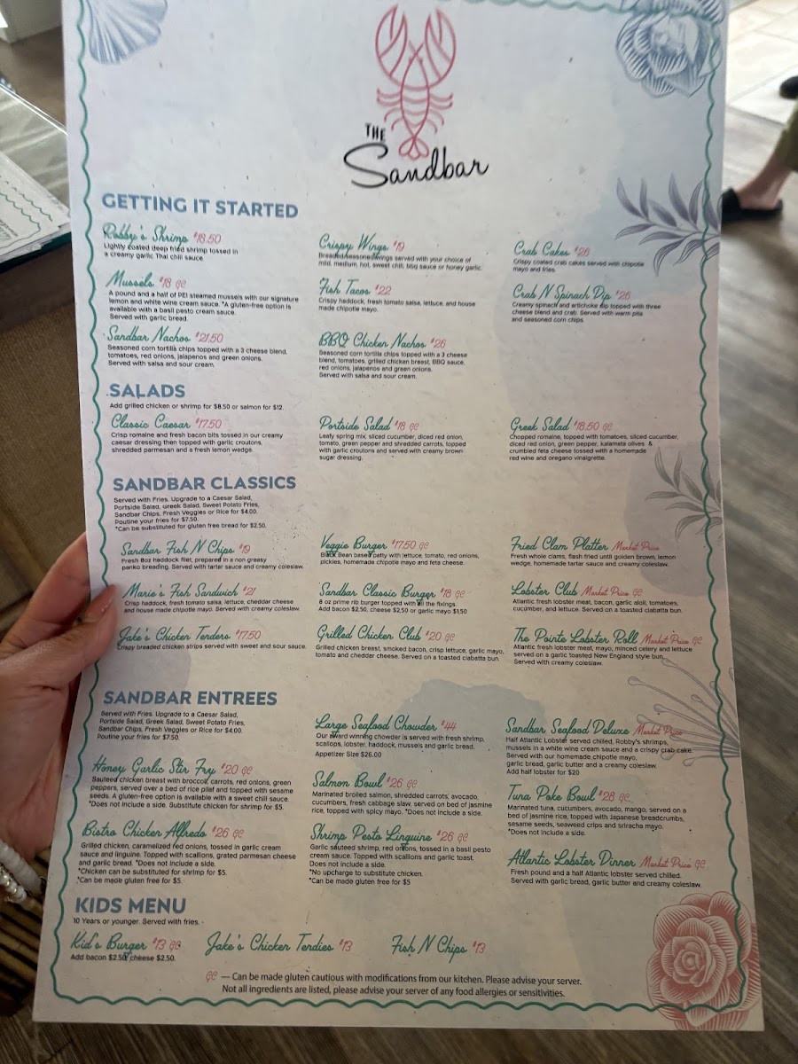 Whether you’re indulging in a casual lunch or a special dinner, The Sandbar’s unique setting and delightful menu ensure a dining experience that lingers in your memory.